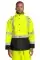 Information:This lightweight jacket is jobsite-ready, provides protection against the rain and meets the highest class of visibility. 100% polyester oxford with water-resistant finish Black bottom front and lower sleeves for a cleaner appearance Fully seam sealed 3-panel hood that stows in collar Durable, reflective 2-inch tape meets ANSI 107 requirements and provides 360-degree visibility on body and sleeves Full-length exterior storm flap with snap closure Adjustable cuffs with hook and loop closures Two lower front pockets with flaps Adjustable drawcord hem This garment must be fully zipped to be in compliance with ANSI 107 standards