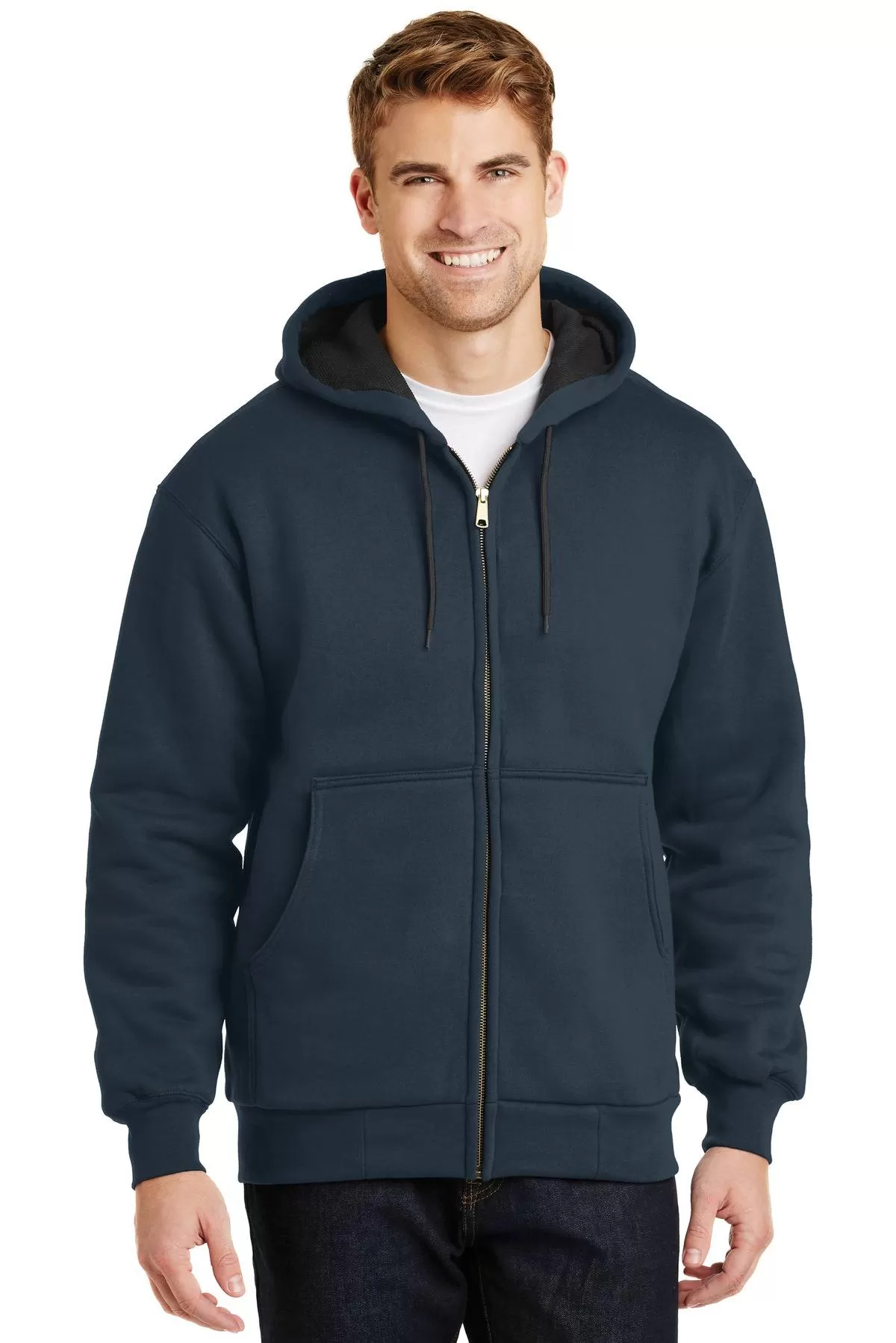 This durable hooded sweatshirt has a thermal lining to help keep you warm and comfortable in all types of weather. 12-ounce, 60/40 cotton/poly 9-ounce, 100% polyester thermal lining for extra warmth Interior cellphone pocket Rib knit cuffs and waistband Brass zipper Drawcord with brass eyelets Front hand warmer pockets Port Pocket™ for easy embroidery access