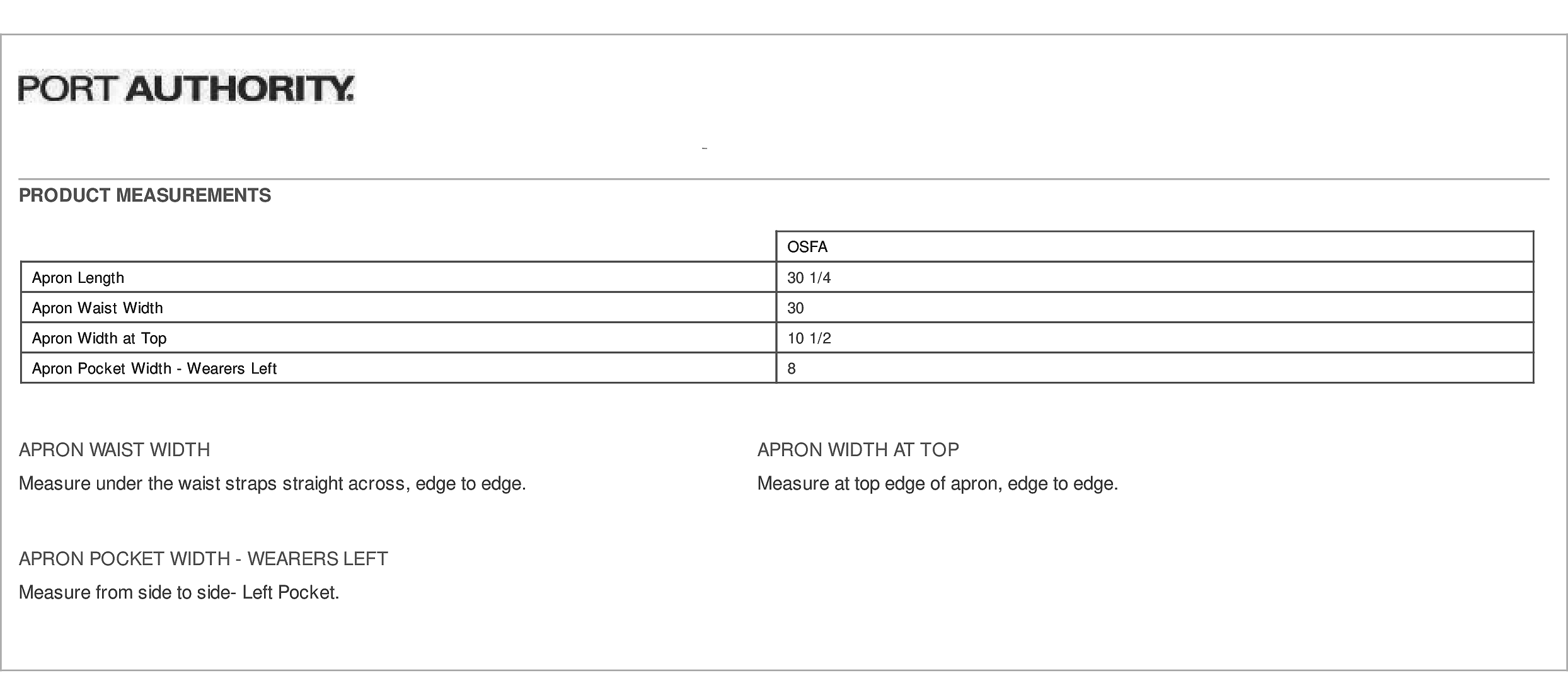 Review: 5 - "Indeed a good apron" by Joseph F Clouser, written onInformation: 8.5-ounce, 100% cotton canvas - Contrast 100% cotton webbing neck and waist ties - Antique brass metal grommets and neck adjuster - Two patch pockets with antique brass metal rivets - 21.25'w x 30.25'l