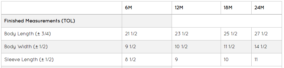 Features: Ribbed collar, sleeve, and leg cuffs. Innovative snap tape closure. Reinforced crotch inseam. Side seam construction. EasyTear™ label.